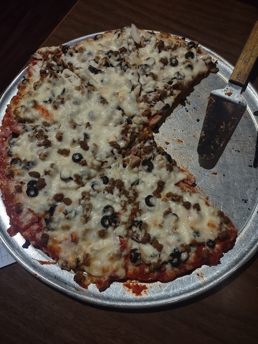 What a great pizza place!!!!! There is nothing that I have ever ordered that wasn’t good. The pizza is always hot and fresh with a crust that is just perfect. Their bead sticks are nice and garlicky (if that is a word) that is delicious with or without the cheese. Everyone is friendly and in the years I have been coming, I have never been disappointed. Just like the old style pizza places. Go now!!!!!